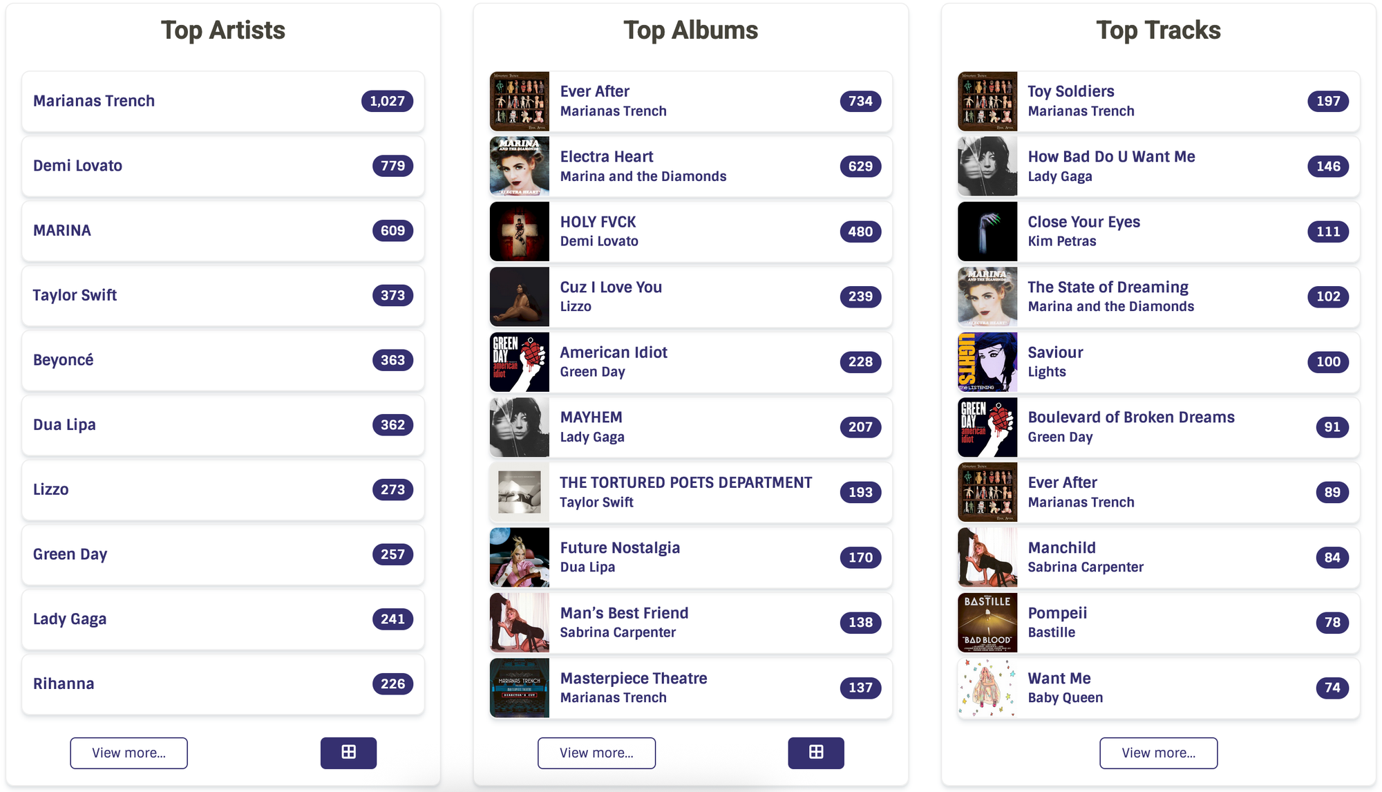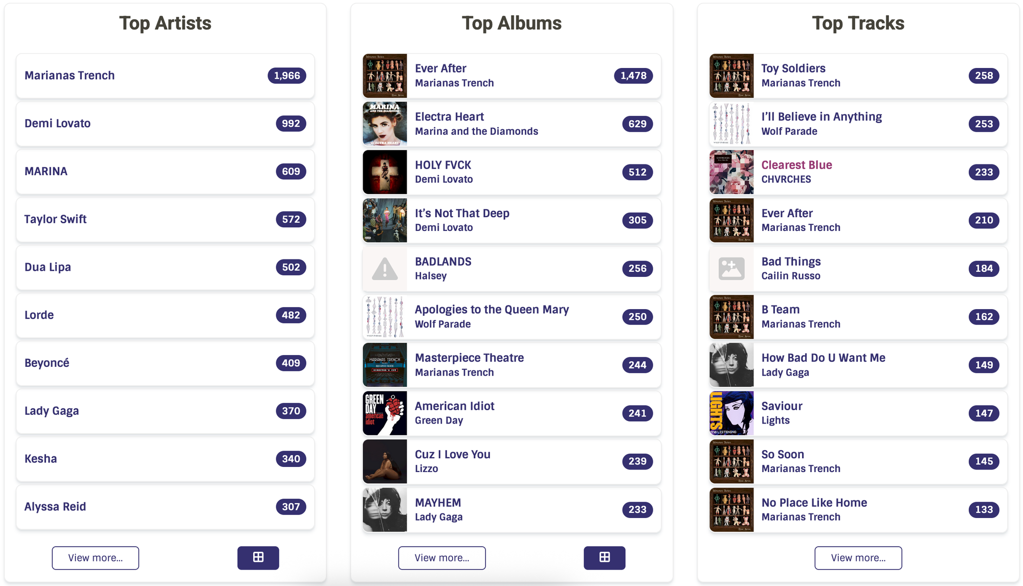 April has been a busy month and while I did make sure to take my monthly screenshots of my ListenBrainz stats at the start of the month, I kept saying I'd have time tomorrow to write a proper blog post for them.