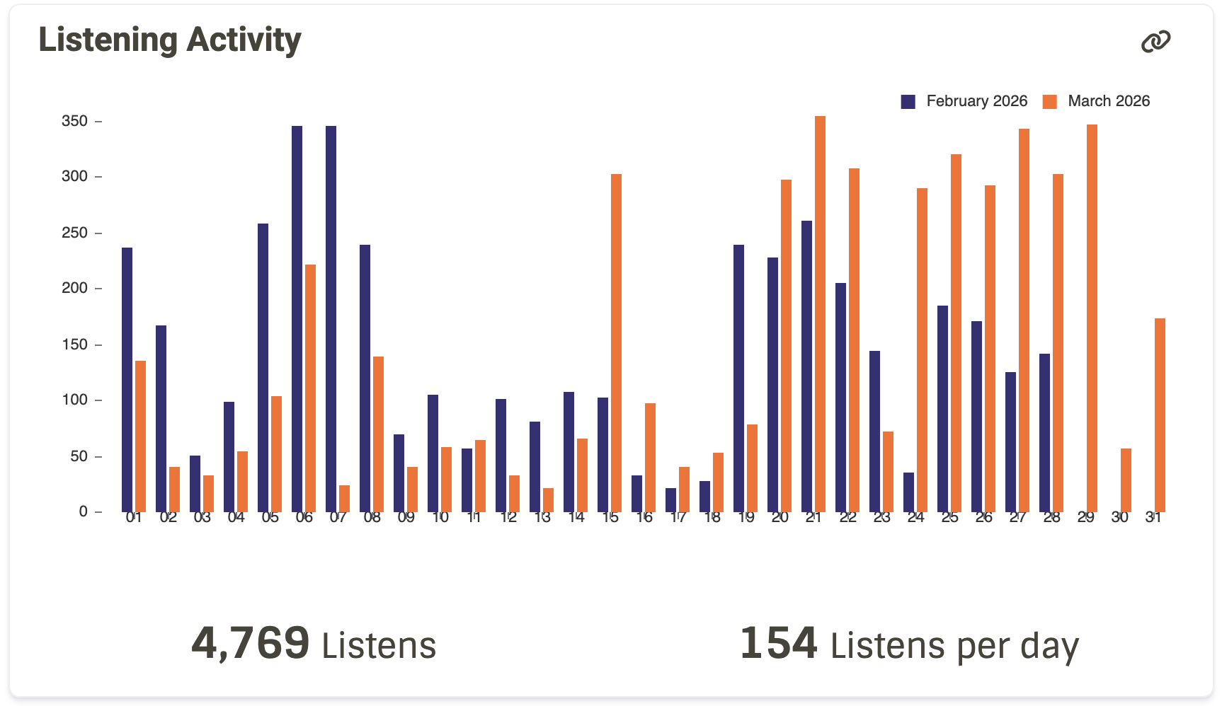 Since we are now past the 20th of the month, I figured may as well just post the screenshots with a very minimal post. So here are my March 2026 ListenBrainz statistics without any of my commentary.